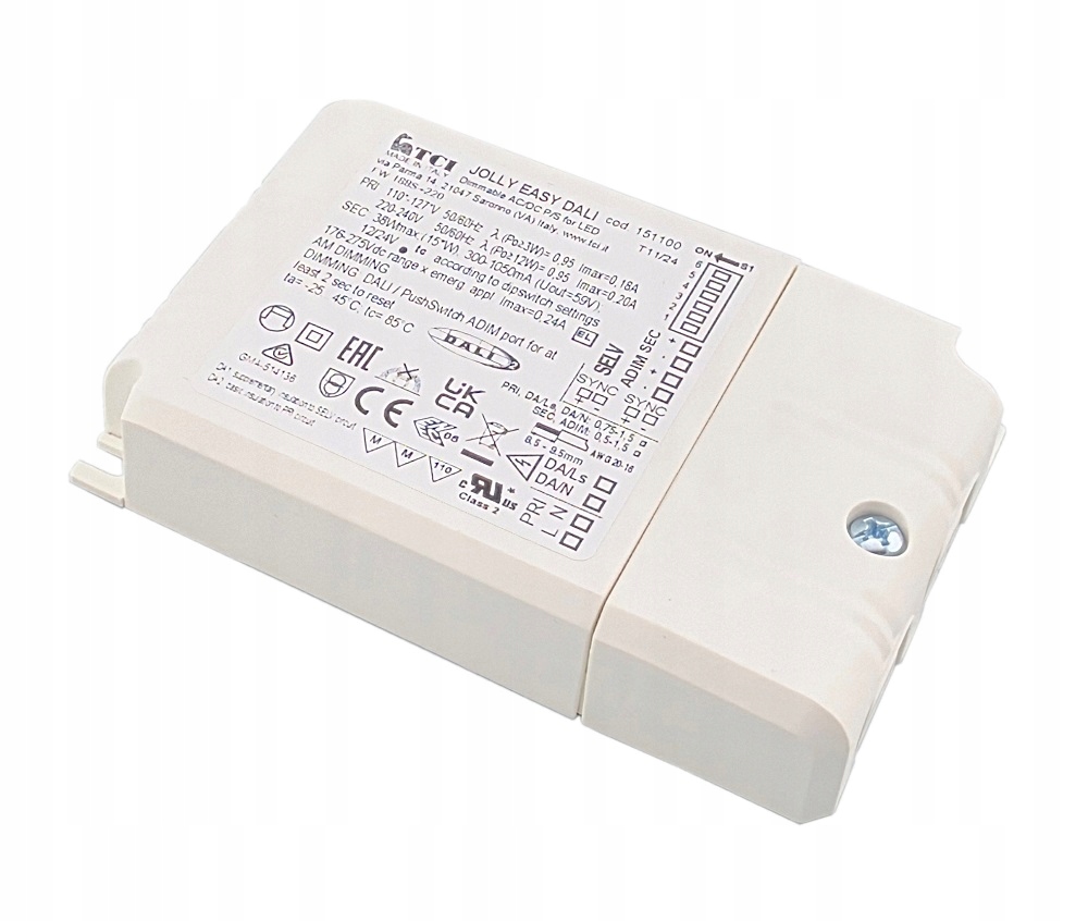 Zasilacz LED DC MAXI JOLLY DALI TW 45W 900mA Zasilacz do zabudowy: Zasilacz wieloprądowy z 2 kanałami do sterowania temperaturą barwową modułów TW LED. Zgodny z DALI typu 8. Jeden adres DALI dla 2 kanałów wyjściowych do sterowania...