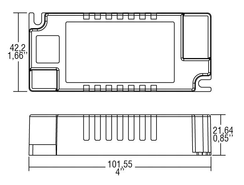 Zasilacz elektroniczny AC/DC z wyjściem napięciowym, przeznaczony do instalacji zgodnych ze standardami zastosowań oświetleniowych.