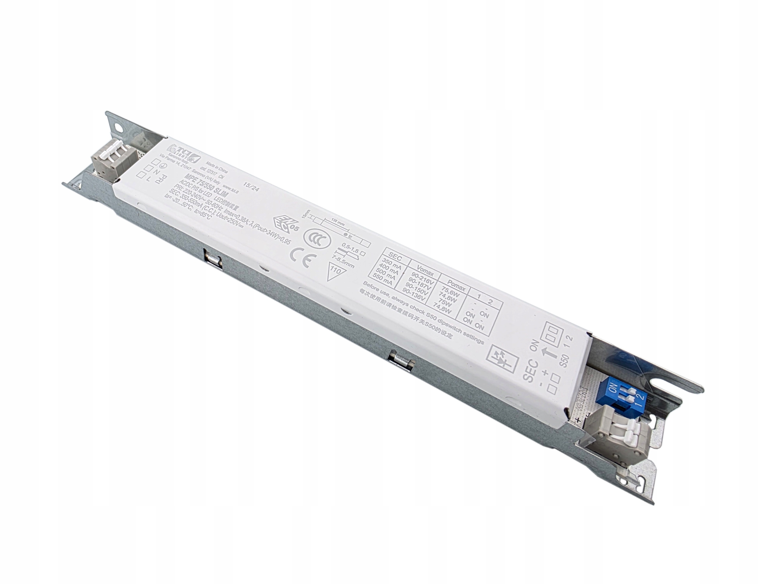 Zasilacz LED TCI MPE 60W / 350mA SLIM Sterownik do zabudowy: Wieloprądowy sterownik z przełącznikiem DIP do wyboru prądu wyjściowego. Może być stosowany do sprzętu oświetleniowego w klasie ochrony I. Aktywny korektor współczynnika mocy....