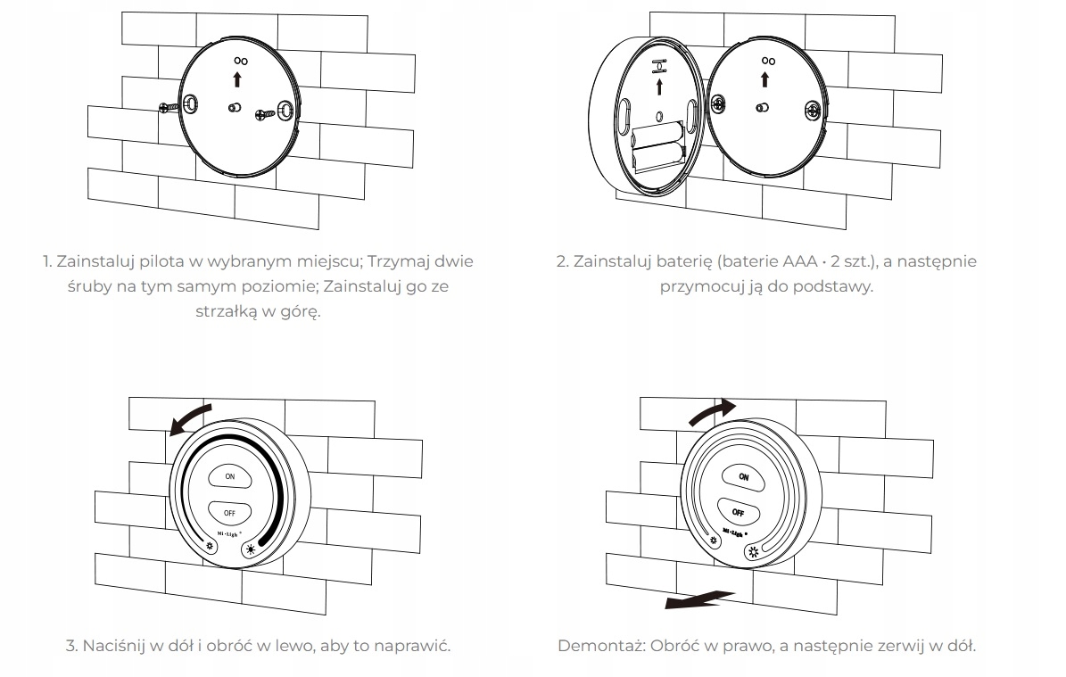 Prezentowany pilot naścienny FUT087 został zaprojektowany tak by jego montaż był natynkowy za pomocą taśmy dwustronnej lub śrubek.