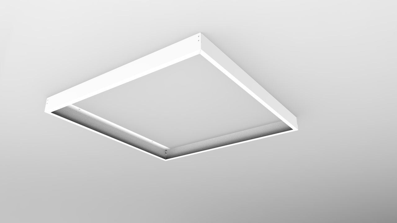 Solidna ramka aluminiowa w kolorze białym do natynkowego montażu paneli LED 60x60 cm. Umożliwia szybki i estetyczny montaż panelu LED na suficie bez potrzeby stosowania sufitu podwieszanego.