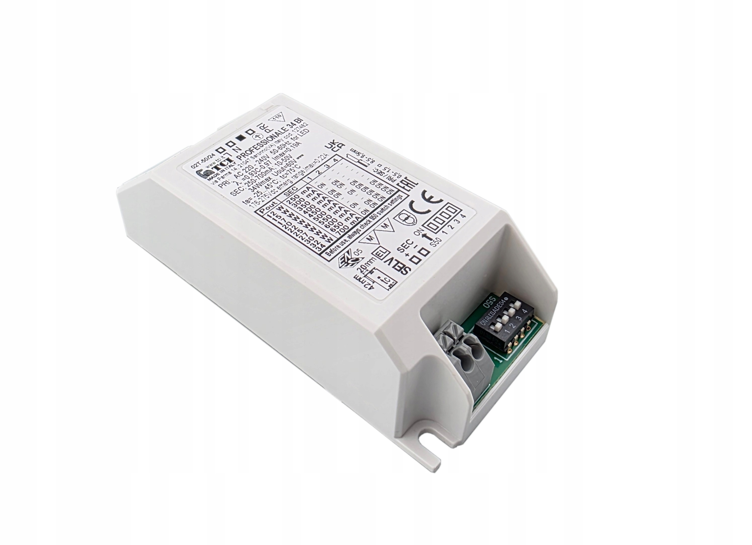 Zasilacz elektroniczny AC/DC z wyjściem napięciowym, przeznaczony do instalacji zgodnych ze standardami zastosowań oświetleniowych.