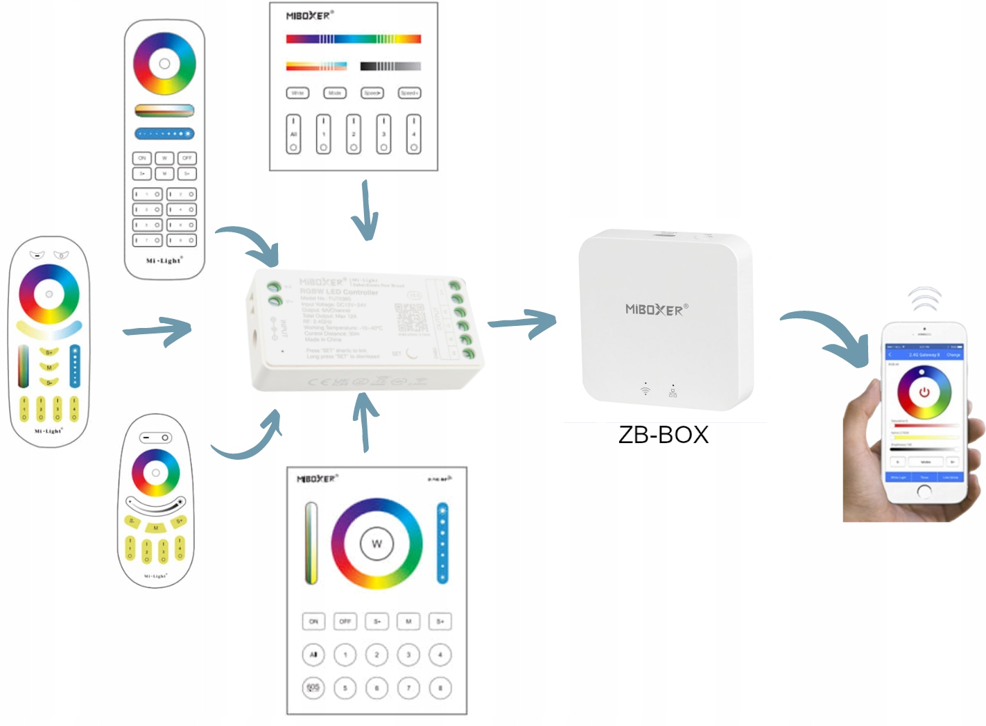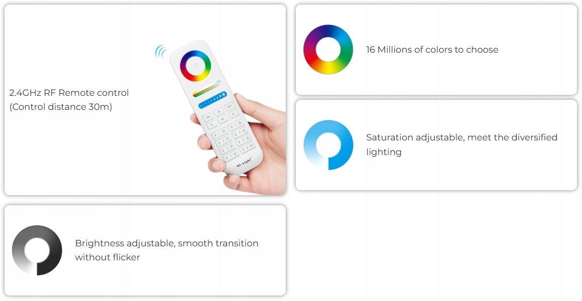✅ Sterowanie przez piloty MiBoxer / aplikację (z bramką WiFi)
