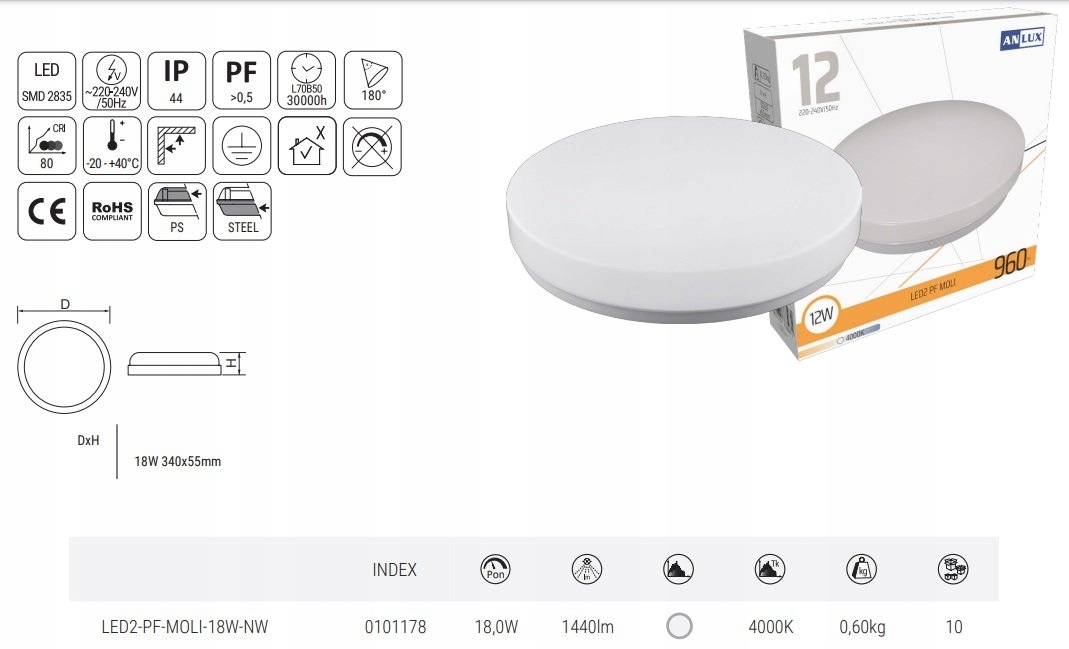 Dzięki stopniowi ochrony IP44 sprawdzi się nie tylko w suchych pomieszczeniach, ale również tam, gdzie występuje podwyższona wilgotność – jak kuchnia, łazienka czy pralnia.