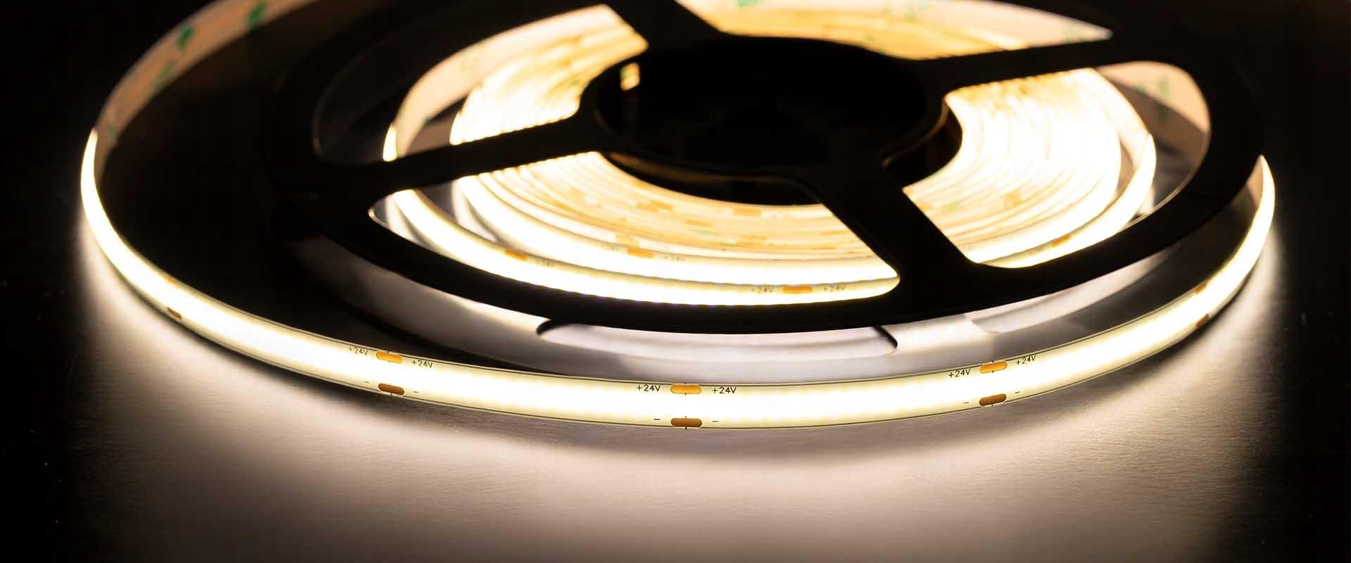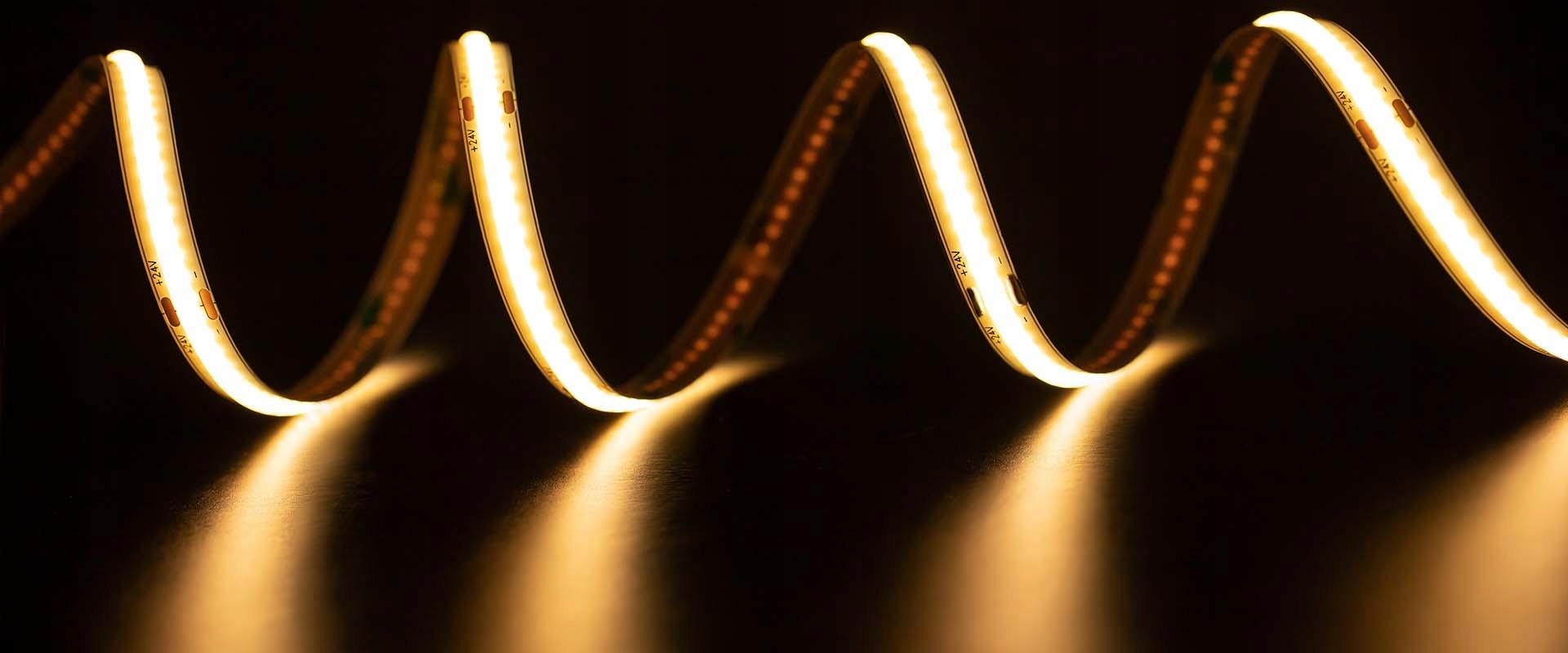 Taśma LED DAMIK COB to nowoczesne źródło światła o równomiernym strumieniu bez efektu punktowych diod. Dzięki technologii COB światło jest jednolite i przyjemne dla oka, idealne do zastosowań dekoracyjnych i funkcjonalnych.